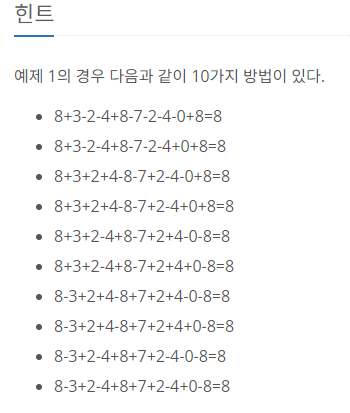 2. 쓸 수 있는 기호가 +, - 만 있기 때문에 특정한 수를 더하거나 뺐을 때 가능하다면 그 수의 값에 맞게 배열에 더한다.