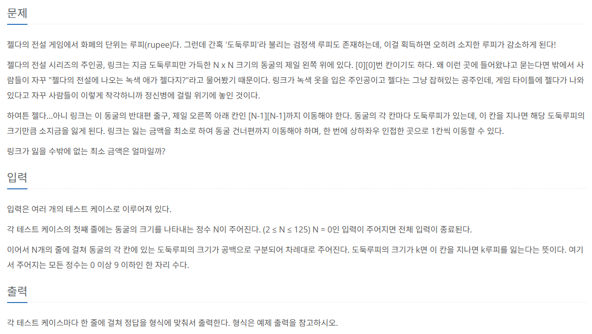 https://www.acmicpc.net/problem/4485